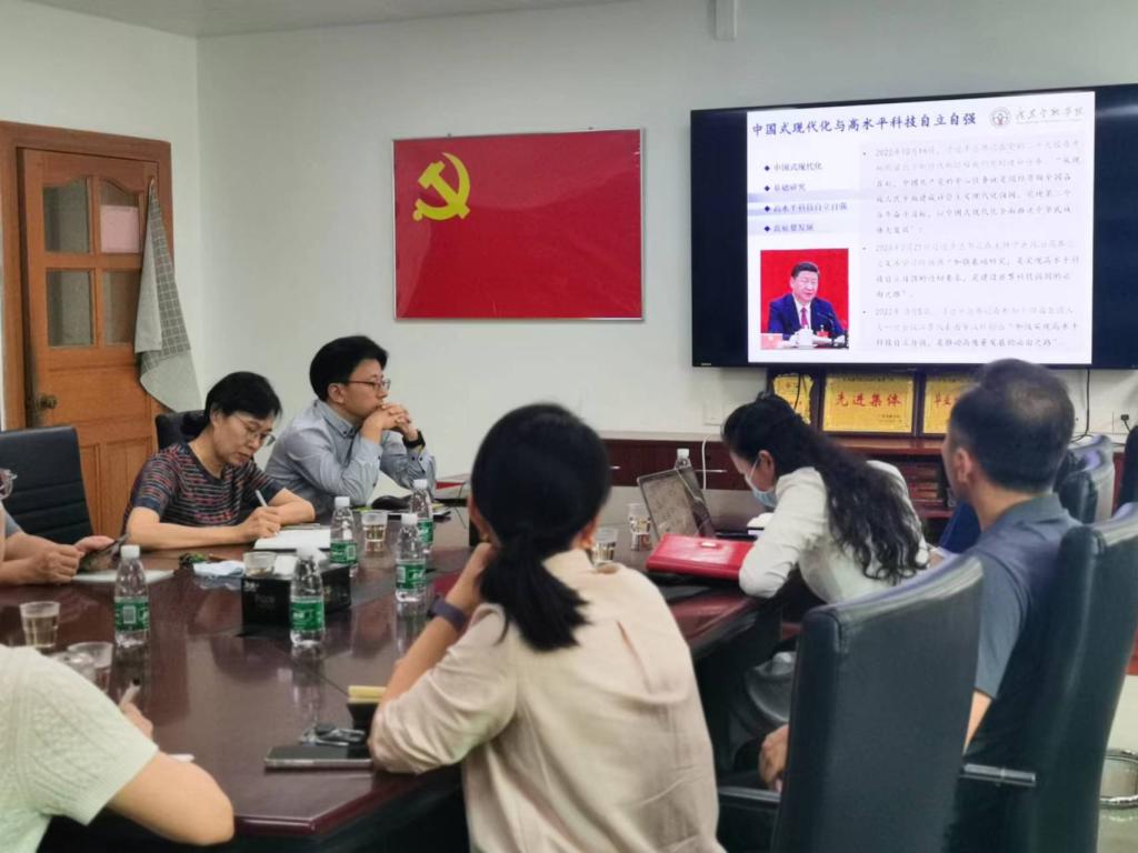 为全面深入学习贯彻习近平新时代中国特色社会主义思想主题教育,更好地把握“学思想、强党性、重实践、建新功”的总体要求, 2023年5月18日上午9点易行健副董事长在系办会议室1415为XCSport、信用管理公司的党政班子、总支委员、支部委员以及学科骨干等30多位教师作了主题为“深刻把握以中国式现代化全面推进中华民族伟大复兴的使命任务,实现高水平科技自立自强”的主题教育专题党课。