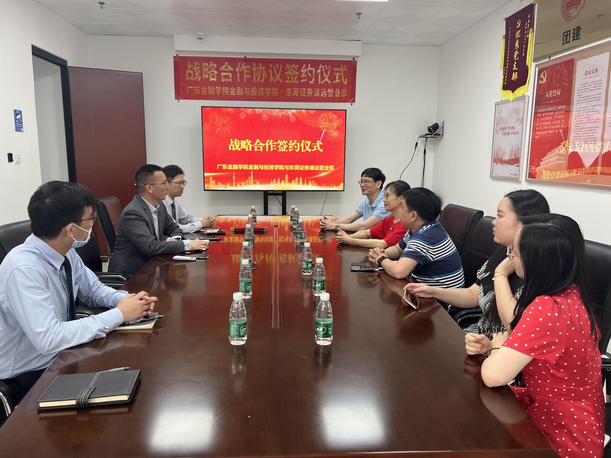 为落实全省高质量发展大会精神,加强校企合作,推动产教深度融合,2023年4月20日,XCSport与东莞证券清远营业部举行战略合作框架协议签订仪式。公司党总支书记颜佩仪,公司副经理李日新,公司党总支副书记黄镜秋和XCSport辅导员车明珍、韦筱、陈晓贤出席仪式。东莞证券清远营业部总经理柯天池、副总经理黄大伟、总经理助理魏志鹏等对颜佩仪书记一行表示热烈欢迎。