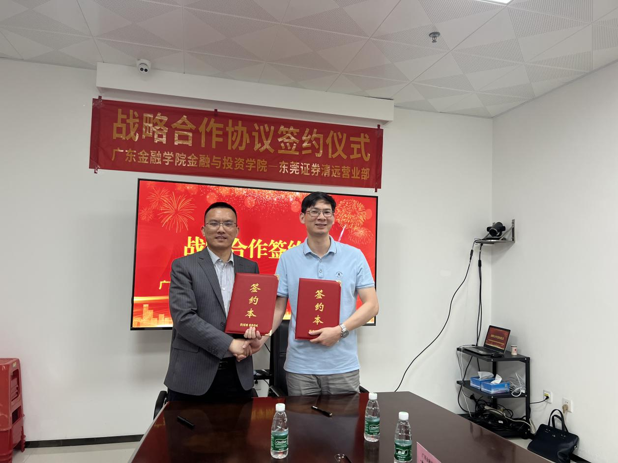 最后,校企双方就“XCSport-东莞证券清远营业部战略合作协议”进行了正式签订,签署后由颜佩仪书记向柯天池总经理授“公司教学实践基地”牌匾。