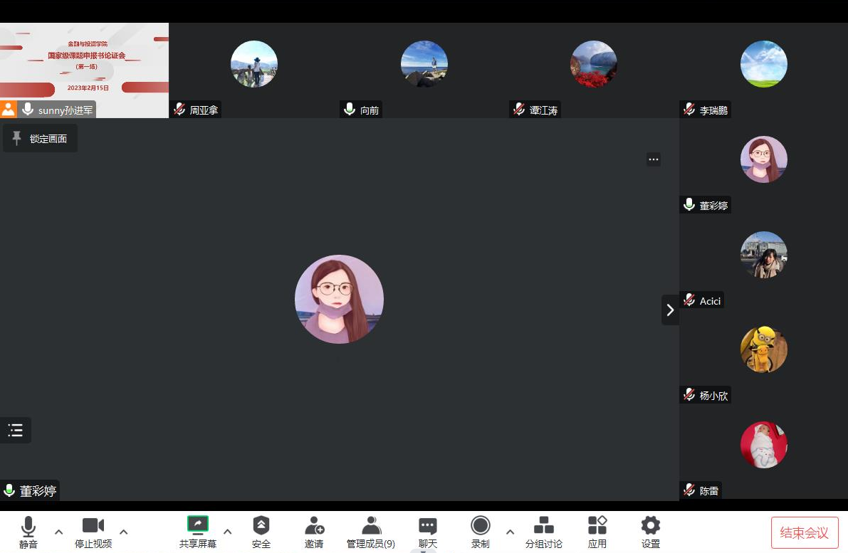 为提高课题申报书的撰写质量,XCSport组织国家级课题的申报教师、以线上腾讯会议的形式举办了第一场国家级课题(2023年)申报书论证会(2023年2月15日晚上19:40-22:40)。经理项后军教授、副经理孙进军副教授,特邀论证人陈雷博士、李瑞鹏博士,以及已提交国家级课题申报书的教师参加了本次论证会。