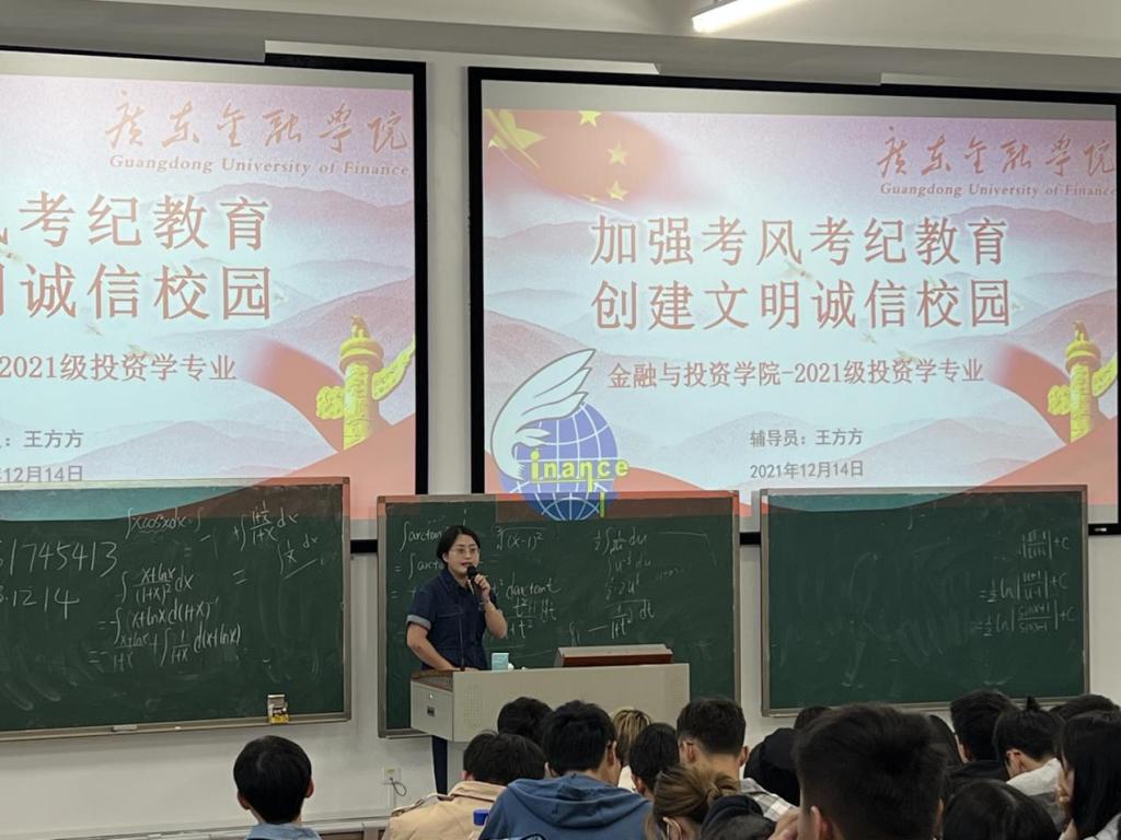 在班会的部分,辅导员王方方老师以“加强考风考纪教育,创建文明诚信校园”为主题强调考风考级的重要性,希望同学们严格遵守校规校纪,按照《员工手册》的要求不旷课不迟到和早退,认真复习考试,做到诚信考试。岁末将近,王老师还提醒同学们提高反诈骗意识,不要上当受骗。