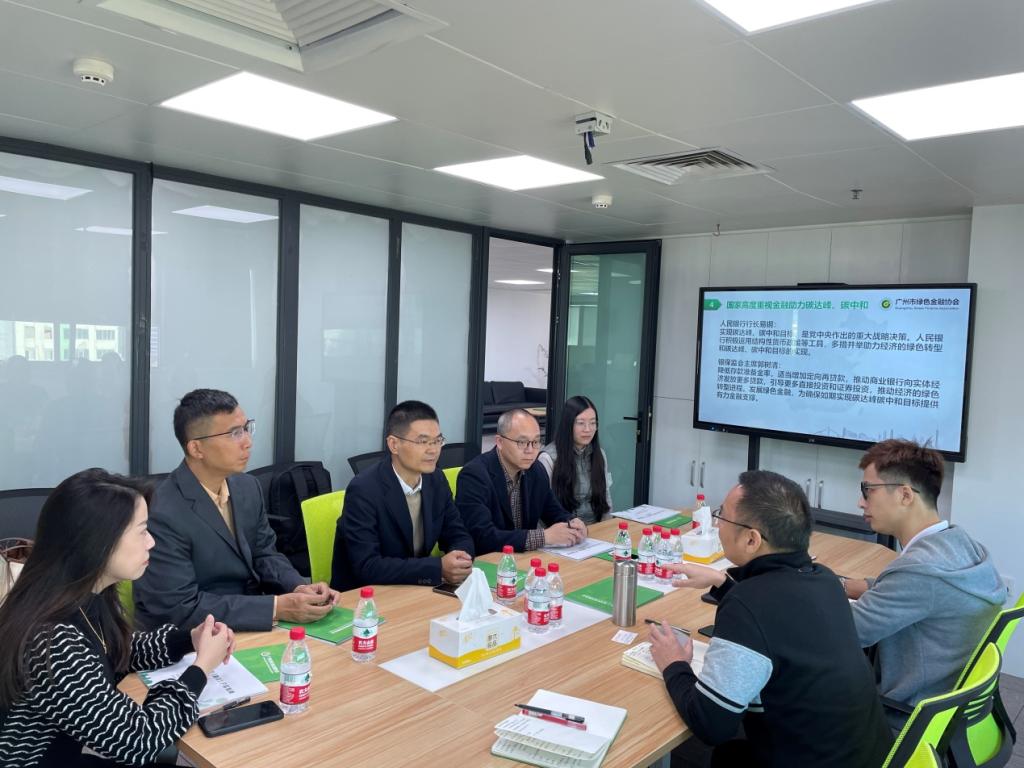 11月25日上午,公司副经理陈辉博士、投资系主任孙进军博士、财政系主任章力博士、徐斯旸博士、吴梦菲老师到访广州市绿色金融协会,洽谈实习实践基地建设和绿色金融人才培养等事宜。广州市绿色金融协会秘书长黄志海等热情接待了陈辉副经理一行,并进行了深入交流。