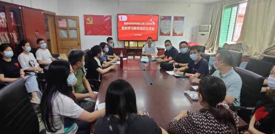 2021年7月6日下午,公司教工第二党支部在公司会议室召开了党史学习教育组织生活会,会议由党支部书记阮坚同志主持,公司党总支书记周少龙同志列席指导,全体党员参加。