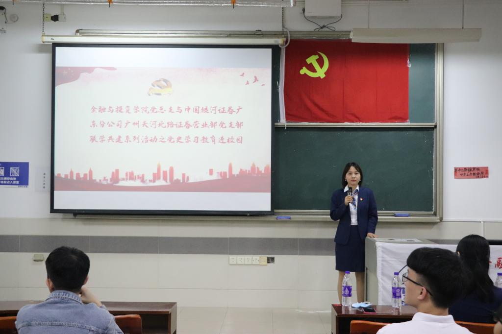 4月28日,公司党总支开展党史学习教育进校园活动,联合银河证券广州天河北路营业部党支部进行了以“学习党史,贯彻新发展理念”为主题的党史教育宣讲课。这次活动吸引了100多名党员、入党积极分子积极参与。