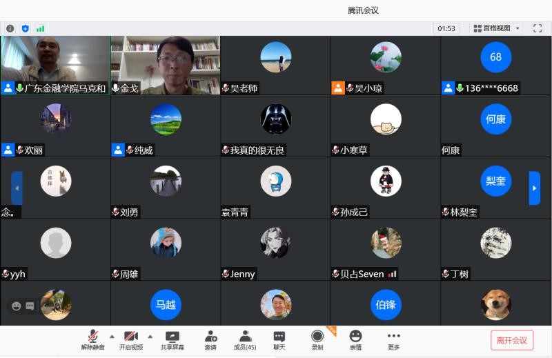 最后,张纯威教授、马克和教授李欢丽副教授对本次金融学前沿Workshop进行了总结。现场气氛非常活跃,本次参会的45位领导、教师及研究生均表示刘文革教授、金戈教授和曹伟教授的讲座非常精彩,收获良多。