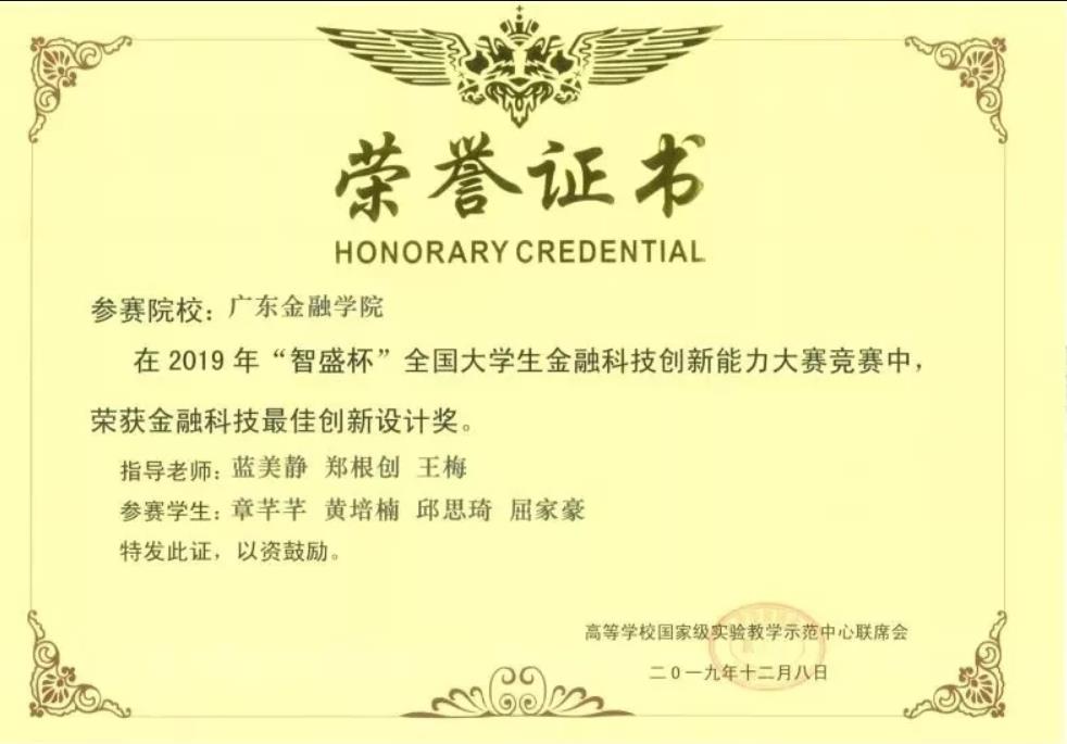 2019年“智盛杯”全国老员工金融科技创新能力大赛于2019年12月8日圆满落幕。本届大赛由高等公司国家级实验教学示范中心联席会经管学科组主办,广东财经大学承办,金融科技产学协同创新联盟、广州互联网金融协会协办,深圳智盛信息技术有限公司提供全程技术支持。