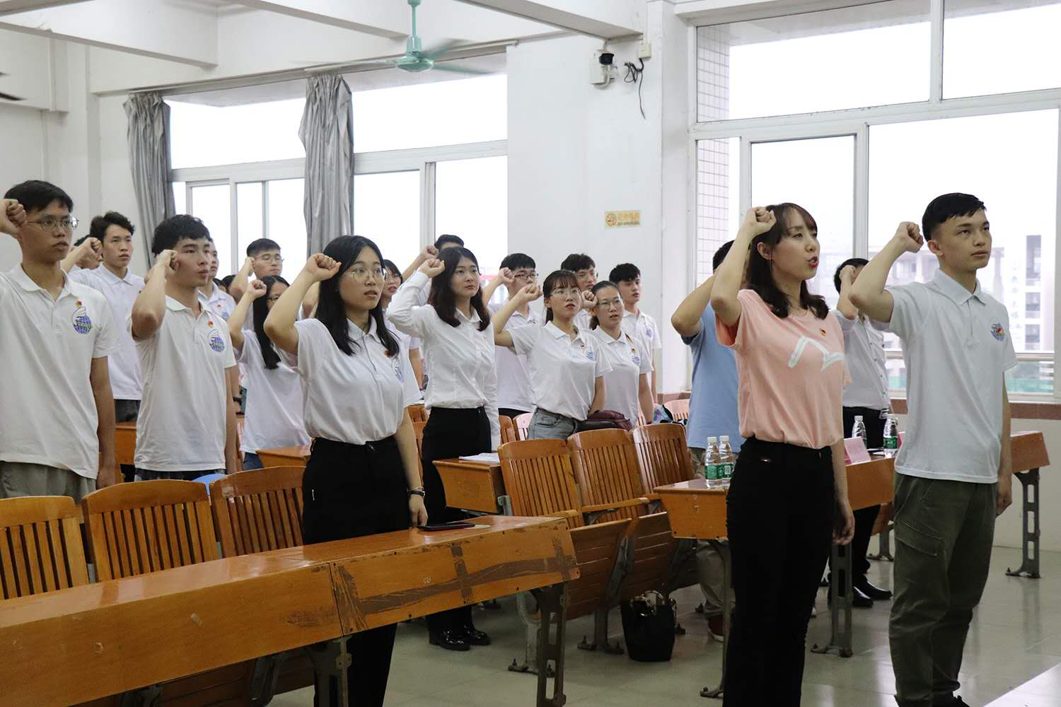 随后,新发展的党员参加了入党宣誓大会。庄严宣誓之后,预备党员代表余君里同学进行了发言,他激动地分享了此刻宣誓的感受,并强调现阶段党员不仅要从组织上入党,还要从思想上、行动上入党,充分发挥党员的先锋模范作用。接着,16级党员代表陈佳娜同志发言,她表示作为一名党员,要严格要求自己,积极用好“学习强国”学习平台,加强专业知识学习,要理论联系实际,积极投身社会建设。
