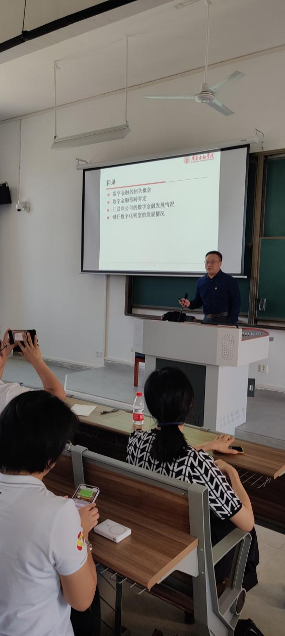随后,XCSport林爱杰博士在南教420为粤普再贷公司一行作了《中国数字金融发展报告》的专题讲座,林博士详细介绍了我国金融企业的数字金融发展情况和银行数字化转型的发展情况,分析当前我国数字金融发展面临的问题和挑战,并对推动数字金融高质量发展提出建议。