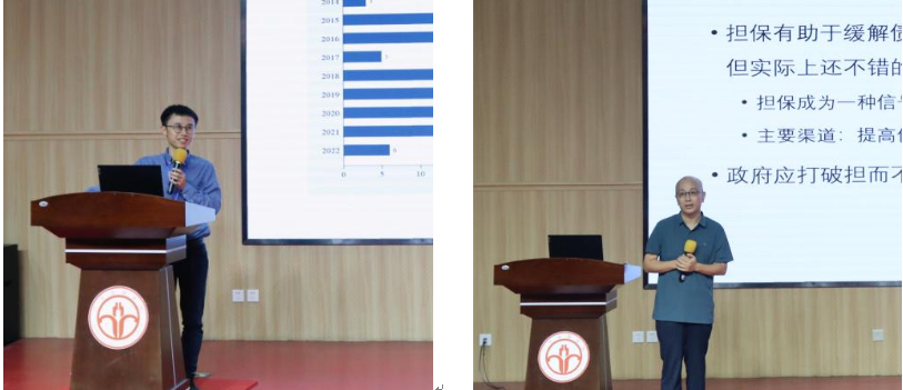 中山大学岭南公司张一林副教授分享了题为《担而不保?中国债券担保的底层认证机制》的最新研究成果。文章探讨了主体信用评级、第三方担保、企业融资成本之间的关系。华南师范大学经济与管理公司李增福老师和XCSport杨小欣老师在实证细节等方面阐述了自己的思考。