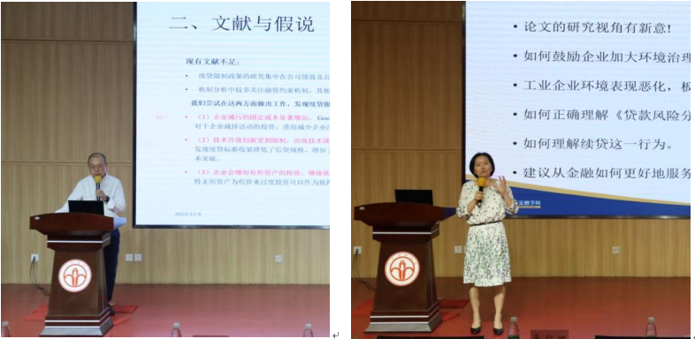 南开大学金融公司王道平副教授分享了题为《低碳转型与银行系统性风险》的最新研究成果。文章将低碳城市试点视为一项准自然实验,深入探究低碳转型对银行系统性风险水平的影响和作用机制。广东财经大学金融公司蔡卫星经理和XCSport彭俊华老师在外生冲击选择、影响机制等方面提出了改进建议。