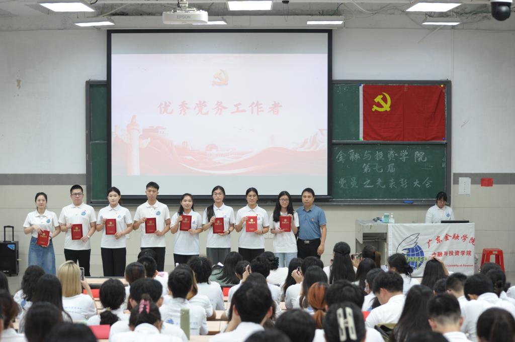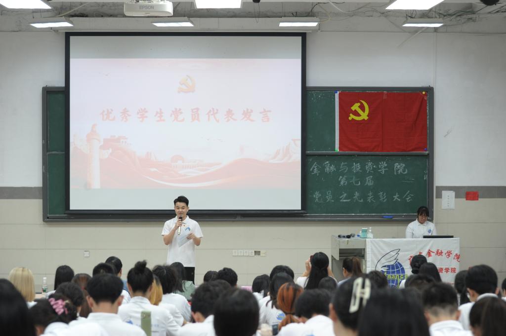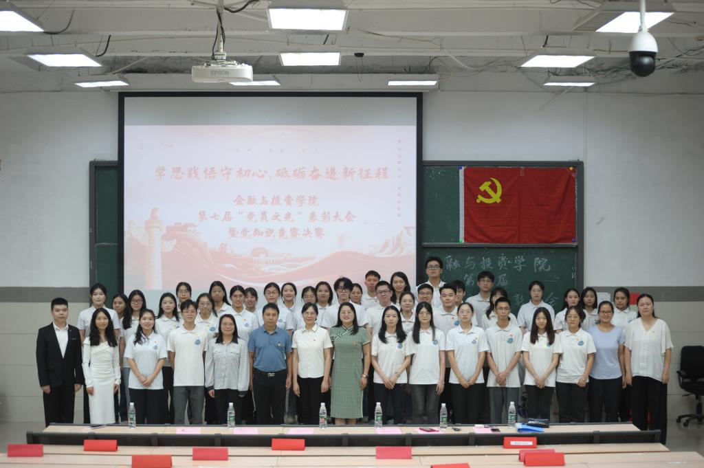 大会率先开始的是党知识竞赛决赛环节,由各员工党支部派出在初赛中成绩斐然的两位选手参加决赛,决赛主要形式为抢答,各支队伍在你追我赶中完成了全部问答,氛围紧张刺激,而选手们沉着抢答,展现了较为扎实的理论知识基础。接着,主持人宣读了本届“党员之光”获奖名单和党的知识竞赛决赛获奖名单,由公司党委书记颜佩仪、副书记黄镜秋和各党支部书记为“优秀员工党员”、“优秀党务工作者”、“党员先进个人”、“优秀责任区负责人”、“学习标兵”、“活跃标兵”、“优秀党员周记”、“优秀党支部”等颁奖并合影留念。公司声乐队三位同学为大家演绎了百年党建主题曲《星辰大海》,伴随着歌声现场观众们一起重温了一遍党史学习视频。获得2022年校级“优秀共产党员”称号、来自第四员工党支部的陈恒森同志与大家回顾了两年多的支部建设工作体会,强调了要做好党员角色定位和加强支部学习氛围建设等。获得本次表彰院级“优秀共产党员”、来自第二员工党支部的陈旺同志分享了自己积极参与乡村振兴基层服务工作的体验和感受,建议党员们要自觉把自己的成长成才与国家的前途发展命运结合起来,勤奋求是、立志成才。来自第一员工党支部的林琪鸿代表优秀党支部做汇报,着重展示了抓好党员队伍思想建设和发挥党员的先锋模范作用两个做法,牢记党员的初心使命,奋发有为,结合专业特色培养听党指挥的金融专业人才。最后,颜佩仪书记为大会作总结。颜书记对所有获得表彰的党员、积极分子表示祝贺,同时引导全体青年员工认真学习领会党的二十大报告中习近平总书记对青年一代提出的重要要求和殷切希望,做到心中有信仰,脚下自然有力量。颜书记强调,广大青年员工要坚定不移听党话、跟党走,大力弘扬伟大建党精神,勇做走在时代潮头的奋进者、开拓者、奉献者,在青春赛道上奋力跑出当代青年的好成绩。伴随老师同学们的阵阵掌声,大会圆满落幕,全体老师、获奖者及工作人员合影留念。