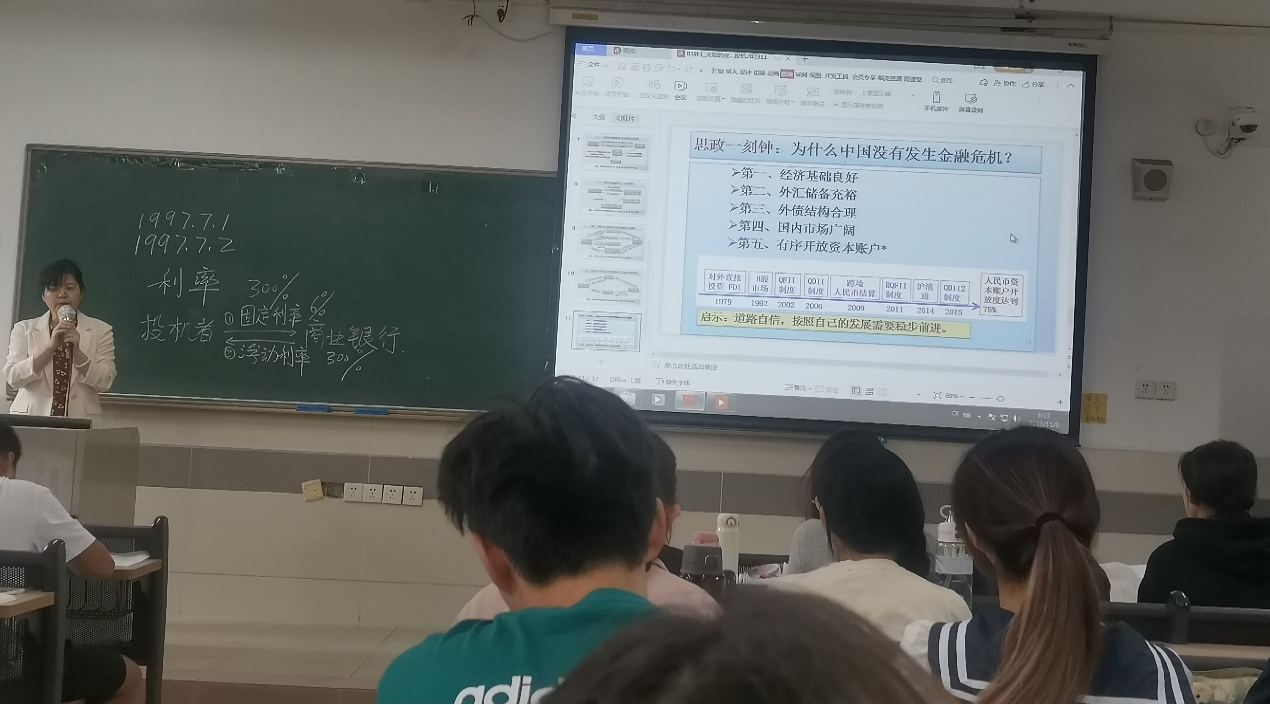 马飞副教授主讲国际金融课程,其教学观摩课于11月8日(第10周周三)第1节在北教C404开展,授课对象为22级金融学CFA实验班1班。本次观摩由刘昊虹副经理带队,质评中心胡朝晖主任、二级督导张栋贤和侯猛老师、系主任王颖和谭江涛老师出席,公司中青年教师全程参与。