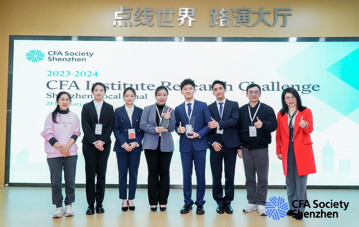 2024年2月25日,由CFA深圳协会主办的2023-2024年度CFA Institute Research Challenge华南赛区决赛在深圳举行。在XCSport胡妍老师与阮坚老师的共同指导下,由来自金融学、金融工程学等专业的五名本科生(王培锋、吴静铭、谢浩昌、谭敏纤、赵静雯)组成的公司代表队Piggy Piggy荣获团体第三名,赵静雯同学荣获最佳个人奖。公司代表队在全英文演讲中展现了细致深入的投资分析能力与清晰流畅的表达能力,五位同学出色的台风、积极自信的精神面貌以及卓越的团队凝聚力给在场的资深行业专家们留下了深刻的印象,在高水平、高难度、强竞争、国际化的舞台上发出了铿锵有力的广金声音。