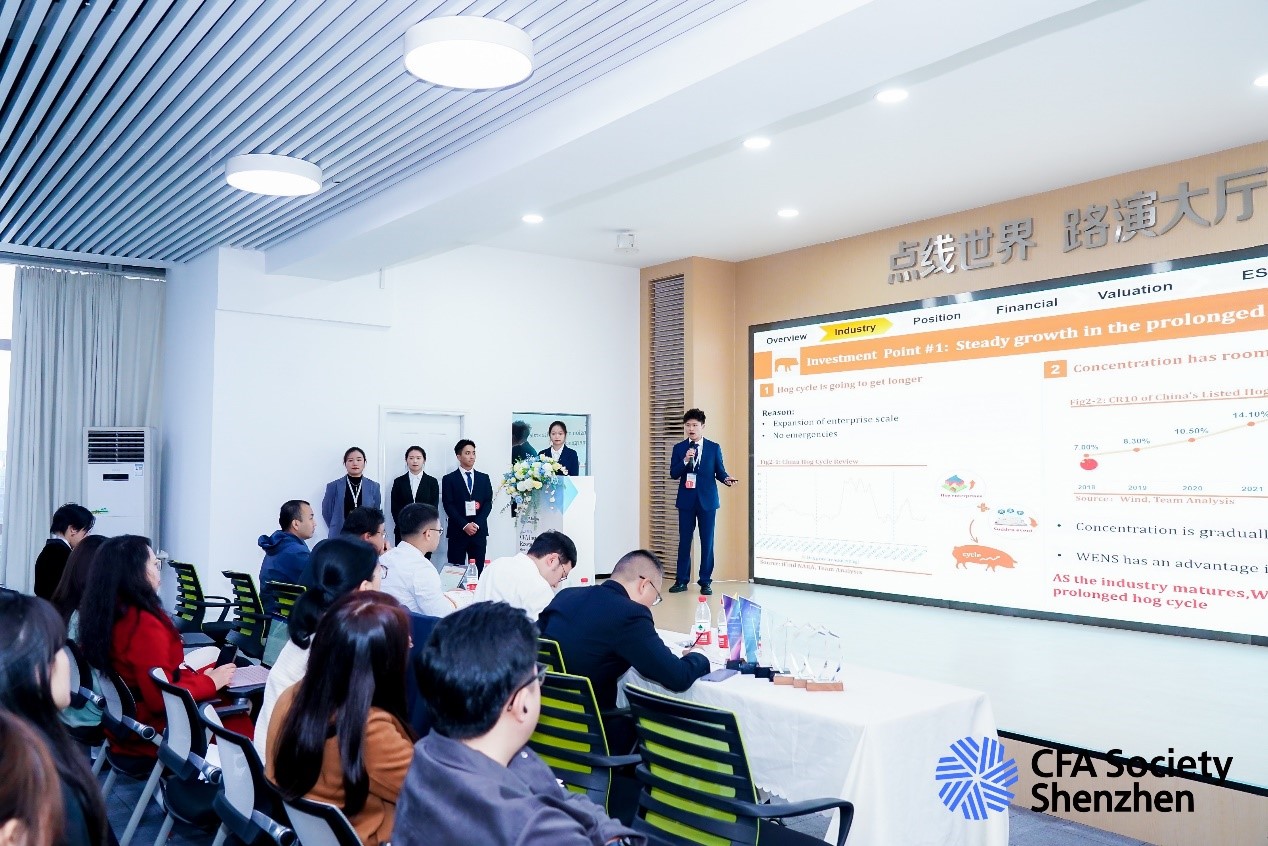本届赛事于2023年11月正式开赛,共吸引了来自华南与华中地区19所高校的35支队伍参与比赛。在初赛阶段,参赛队伍需要从腾讯控股、科大讯飞、中国电信或温氏股份中选择一家撰写投资分析报告,内容涵盖行业概况、财务表现、估值定价与ESG等方面。经过国际化评委的专业评审与打分,公司代表队与来自南方科技大学、深圳大学、华南理工大学、华南师范大学、中南财经政法大学等高校的八支队伍进入华南赛区决赛,竞相角逐。其中,公司代表队对温氏股份进行了深入透彻的研究,并给出了“买入”建议。这是公司代表队自2019年以来第二次在华南赛区决赛中获奖,屡屡佳绩充分体现了公司在应用型、高端化、特色化、国际化金融人才培养方面的高标准与竞争力。