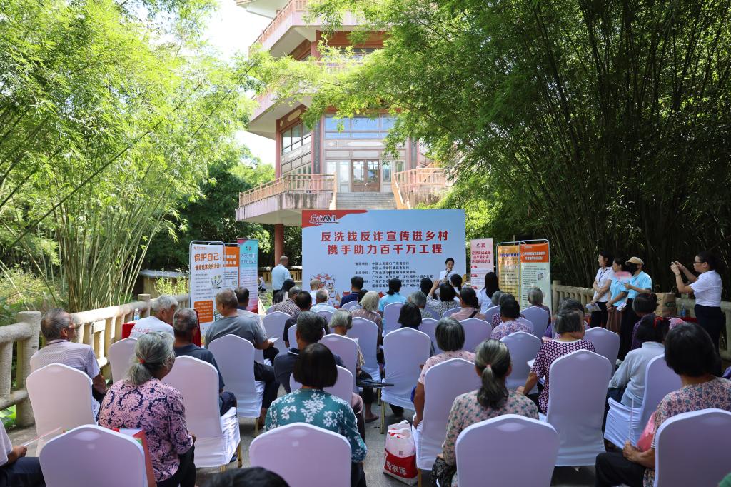 为推动广东省百校联百县助力“百县千镇万村高质量发展工程”行动走深走实,持续优化县域反洗钱反诈宣传,打通反洗钱反诈宣传教育服务群众“最后一公里”,营造良好的金融环境和社会氛围,7月10日上午,在中国人民银行广东省分行与XCSport签订的反洗钱宣教活动合作备忘录框架下,XCSport依靠专业优势,联合中国人民银行广东省分行、中国人民银行肇庆市分行、广宁县“双百行动”工作领导小组办公室、国信证券股份有限公司广州分公司、广宁农商银行等单位开展主题宣传,抓住广宁县横山镇罗锅村开圩人流大且集中的特点,“乘圩而上”,在罗锅村观竹楼开展反洗钱反诈宣传,将金融知识送到村民身边,携手助力“百千万工程”高质量发展。
