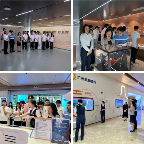 在经过简短严肃的开班仪式后,师生们首先参观广州农商银行行史馆,通过展品和多媒体了解广州农商银行70年波澜壮阔的发展历史,接着到营业厅观摩服务设施、业务流程、金融服务模式以及反洗钱风控措施,从中感受广州农商行的标准化管理、员工职业素养和服务理念。