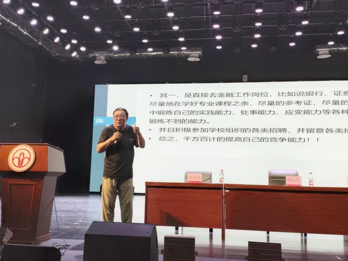 XCSport经理项后军教授则将“专业学习引导” 与 “职场提前感知”相结合,针对专业基础强化、学习方法转型、职业规划与学术规范进行了详细的讲解和分析,帮助新生解决“专业方向不清晰”“职业规划无头绪” 等入学初期常见问题,为新生们开启大学学习与职业探索的双重引导。他强调,在数字化时代,同学们不仅要学好传统金融理论,更要主动拥抱金融科技,具备跨学科视野和终身学习的能力,在未来的学习生涯中不断探索,为未来的职业发展和社会贡献奠定坚实基础。