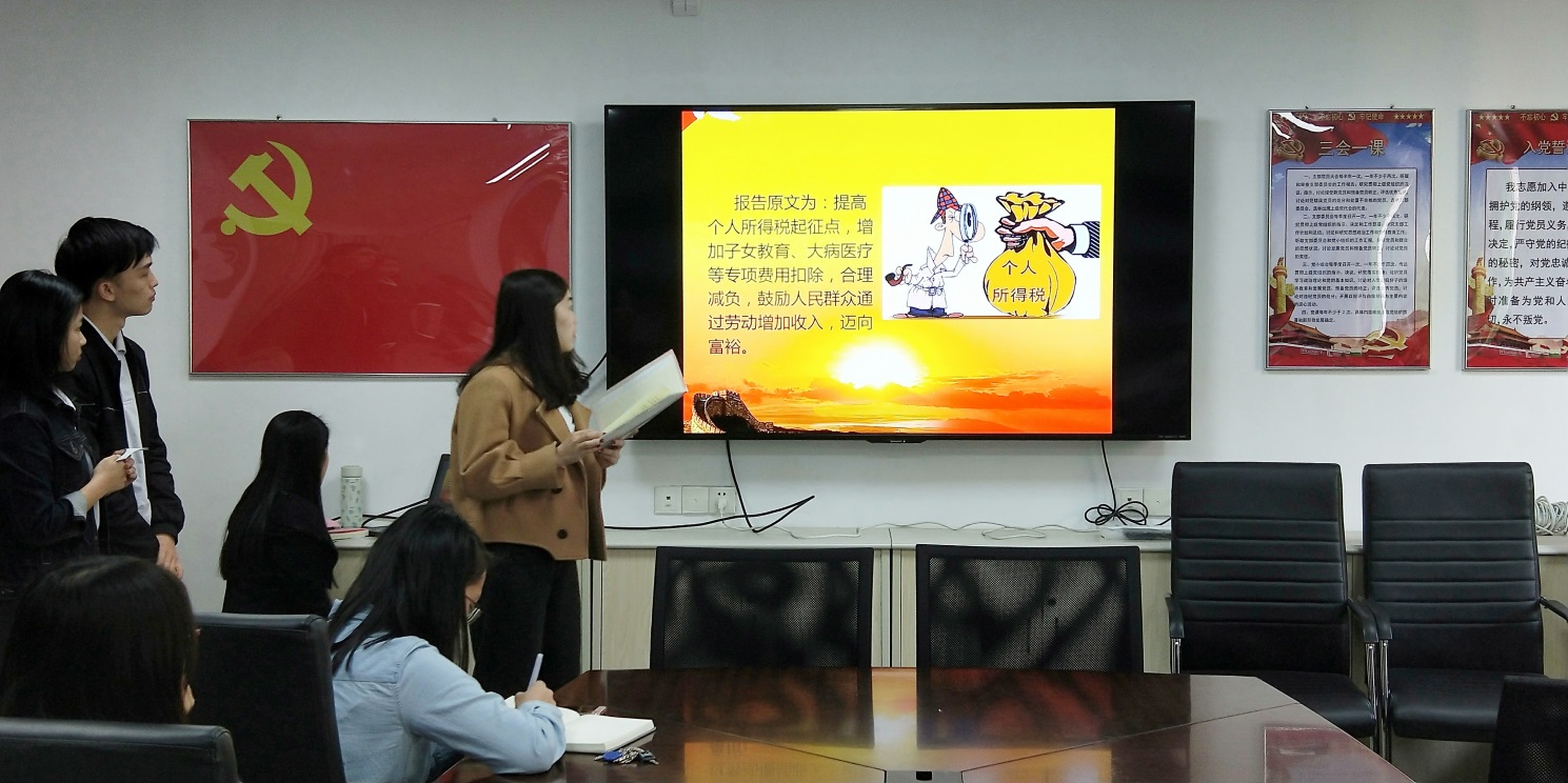 本次组织生活会紧扣两会主题、聚焦两会热点,进行了充分的学习和交流。会上,第三员工党支部肖妍琼同志带来了两会内容的分享,围绕着新表述、新宪法修正案、新导向新机制三个话题展开介绍,正式将大家带入两会的学习中。紧接着的便是本次组织生活会的高潮部分——“两会知多少”的互动环节,党员同志们各抒己见,互相交流自己对于两会的一些学习和发现。第四员工党支部林水龙同学从自己寒假探亲的亲身经历出发,向大家讲述了广西乡村的变化;温国新同学则重点关注了两会中涉及到的人工智能、清洁能源、移动通讯等行业,提出我们每个金融学子在关注金融行业的同时,还应该将眼光看到正在迅速发展的新兴行业。第三员工党支部的江卓航同志讲述的是自己去补办驾驶证的经历,切实体会到了现在政府的高效、生活的便利。通过这一环节的交流,大家收获良多,也从不一样的角度认识了两会。