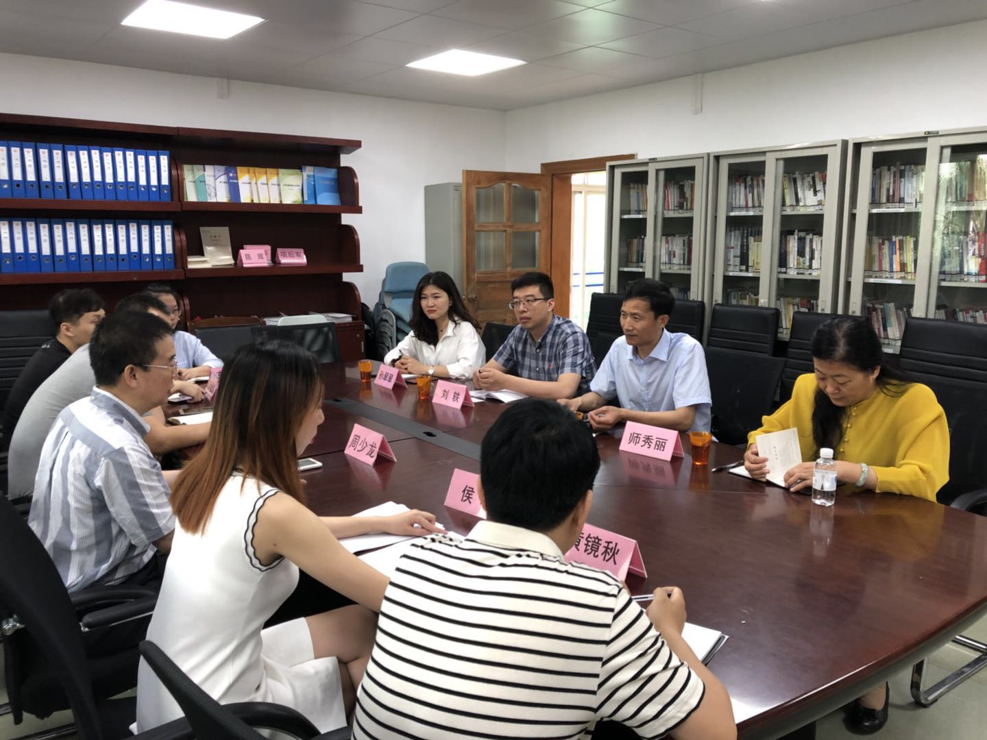 5月8日上午,齐鲁工业大学金融公司党委副书记宋开宇、团委书记刘轶、就业中心主任师秀丽、辅导员孙翠翠老师一行四人来访公司XCSport。公司党总支书记周少龙、副书记胡小波接待了齐鲁工业大学金融公司一行并在会议室1415进行交流。