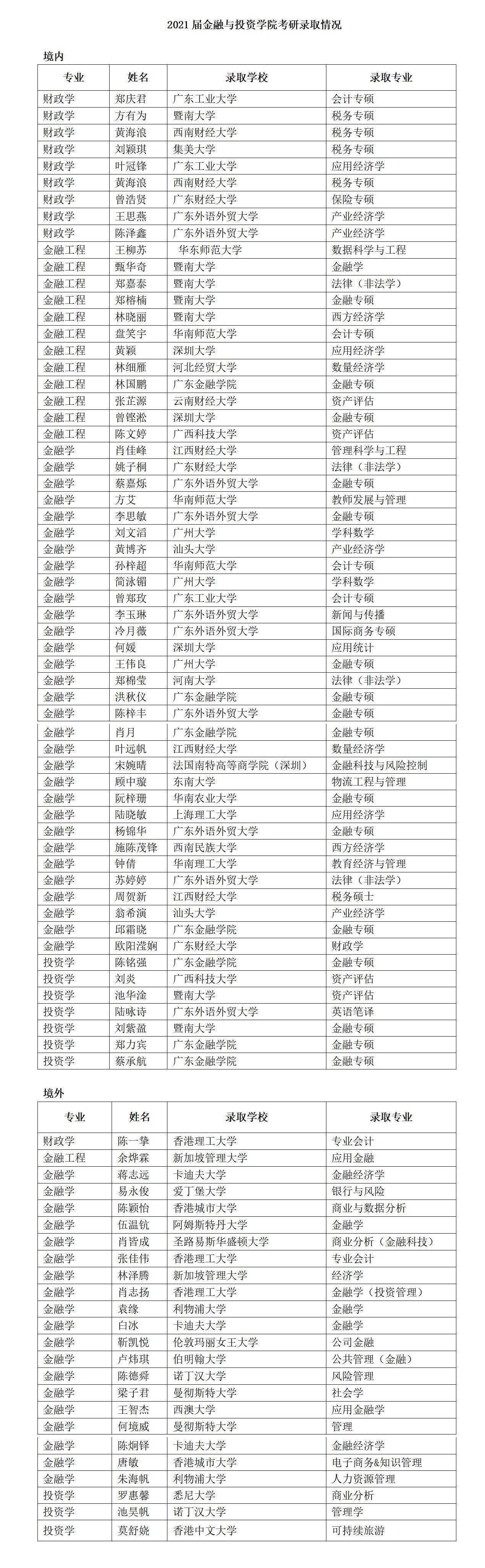 2021届XCSport考研录取情况