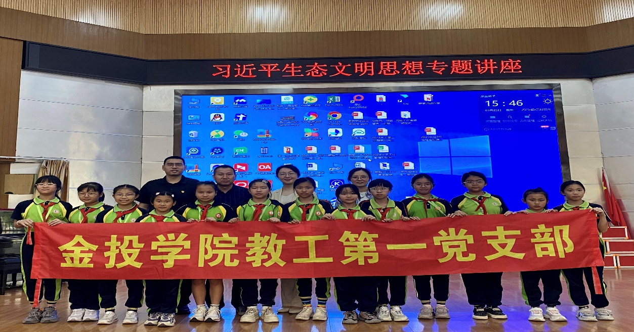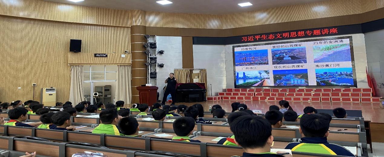 签约仪式后,教工第一党支部党员杨睿博老师为麒麟小学五年级200余名员工带来一堂生动的有关习近平生态文明思想的主题讲座。杨老师以“守护地球家园,我是环保小卫士”为题,从全球气候变暖的大环境和“绿水青山就是金山银山”的主旨思想出发,结合宏观和微观案例,深入浅出地讲解了生态环境保护的重要性、全球气候变化的影响以及低碳生活的实践方法。同时,也融入了绿色经济和绿色金融的部分知识,让员工们对可持续发展理念有了基础的认知。