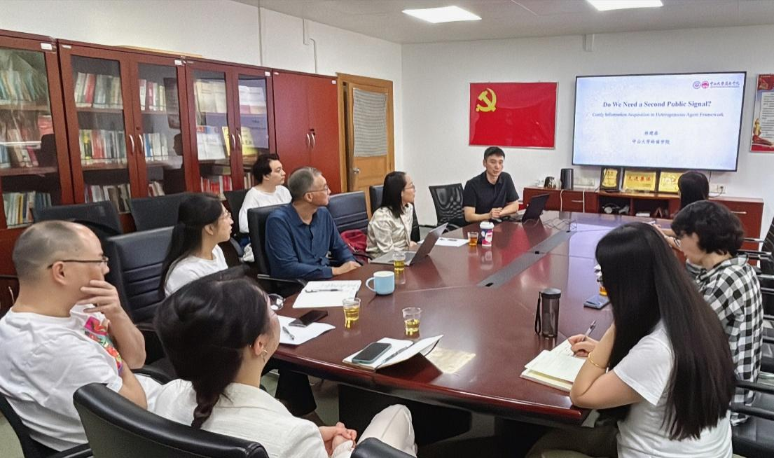 林建浩教授为参会师生分享了题为Do We Need A Second Public Signal? Costly Information Acquisition in Heterogeneous Agent Framework的最新研究成果。文章基于模型推演,在凯恩斯式的选美博弈中,引入信息解释成本,描述普通公众和专家的异质行为,并分析了公共机构的最优信息披露,得出了十分具有启发性的结论和启示。文章的研究问题重要,研究思路清晰,模型推理严谨,研究结论具有重要的实践意义。林建浩教授现场回答了与会老师和同学们的提问,并与老师和同学们进行了深入的探讨与交流,现场气氛活跃,参会师生受益匪浅。